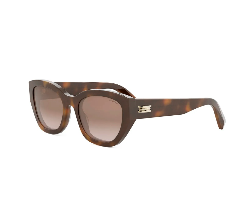 Montatura effetto avana lucido, lenti marrone gradiente.. Parte della collezione B.Zero1 del marchio Bvlgari, questo modello unisce femminilità, stile contemporaneo e qualità artigianale italiana. Ideale per valorizzare ogni volto con eleganza.